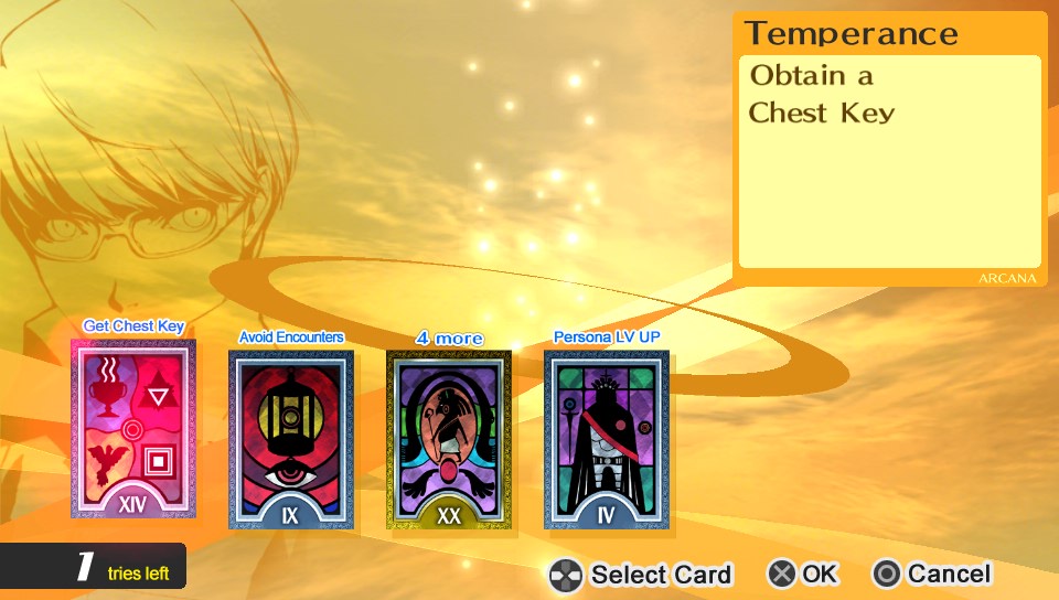 That isn’t the only improvement Golden makes to the core gameplay to make things more enjoyable. The original game’s “Shuffle Time” mechanic, wherein you could obtain random benefits after battle, has seen a complete overhaul that fundamentally changes what you can achieve in dungeons. You can now choose which bonus cards you want to take, sometimes taking a penalty in order to have access to more cards. It’s a risk-and-reward balancing act that can give you benefits as broad as HP and SP restoration, extra Personas, chest keys, temporary invisibility to enemies and even instant level increases. Smart use of this new system can allow you to get so much further in an average dungeon run than you could have ever hoped to before.