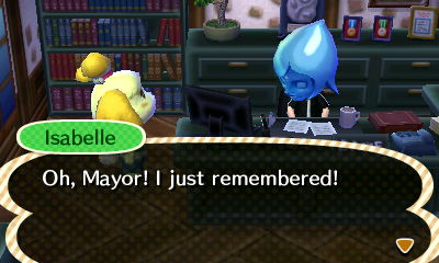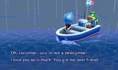 In any case, one of the coolest of many new additions to this latest iteration in the Beetle Animal Crossing franchise is the ability to save a screenshot at any time, which to the best of my knowledge is unique among 3DS games thus far.