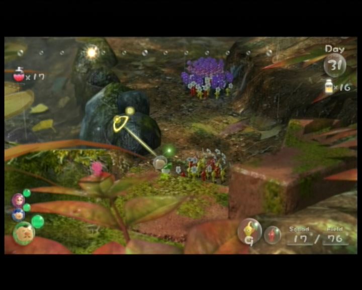 It’s really quite difficult to describe the concept of the Pikmin games to a newcomer, as there isn’t an awful lot to compare them to. One way of putting it is to say that Pikmin is the closest Nintendo has ever come to a real-time strategy series, because the aim of the game is to give orders to a number of squads of creatures that fight and work for you to help you achieve your goals. You actually control the movements of the “general” of the army, so to speak, so it’s a little bit like Overlord or Supreme Commander, but that sells it a bit short. Controlling an army of Pikmin is a simpler and yet uniquely nuanced affair, and though combat and resource harvesting in the name of larger forces are a prevalant part of gameplay, the name of the game is the exploration of a foreign and yet oddly familiar world.