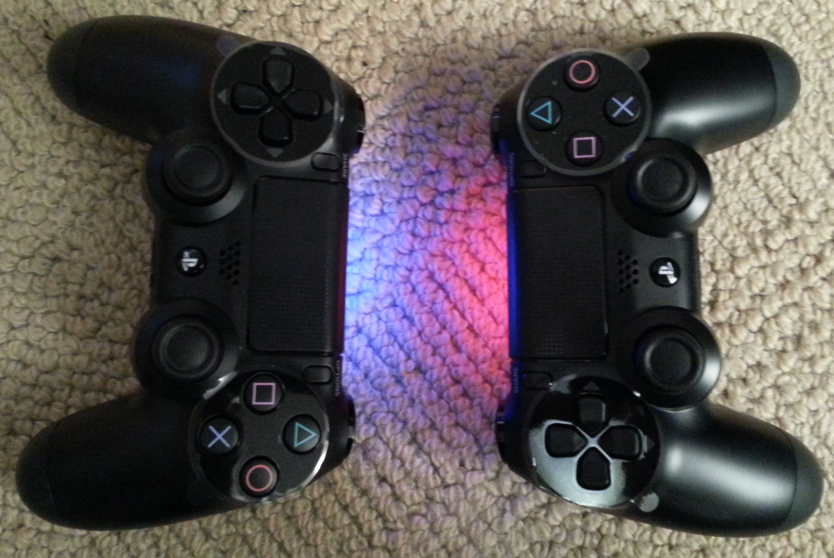 The PS4 controller, on the other hand, is a gigantic improvement over the PS3 one. The new “Dualshock 4” features a larger, more comfortable form factor, an even better D-pad and, most mercifully, a pair of analogue sticks and a pair of triggers that don’t encourage your fingers to slip off them. Start and Select have also vanished from this controller, replaced with not two but three inputs: an Options button which essentially functions like Start, a large-ish touch pad that also clicks like a button to take much of the Select button’s functionality, and a brand-new Share button that I will get to in a moment. Each Dualshock 4 also features a light bar on its back, which glows different colours based on what player number is holding it, turns yellow when charging, and has other occasional in-game functions such as indicating the state of your health in Killzone Shadow Fall. There’s a speaker too, which is used for things like playing collectible audio logs in Killzone, and a headphone jack, which is actually my favourite feature hands-down because it allows you to plug in any pair of headphones, even iPod ones, and play the entire audio output of the PS4 through them. The Dualshock 4 is also backwards compatible with some PS3 games, as long as you keep it plugged in to your PS3 and don’t mind the PS button not working. Reddit has a decent list of known compatible games at the moment, to which I can add Just Cause 2.