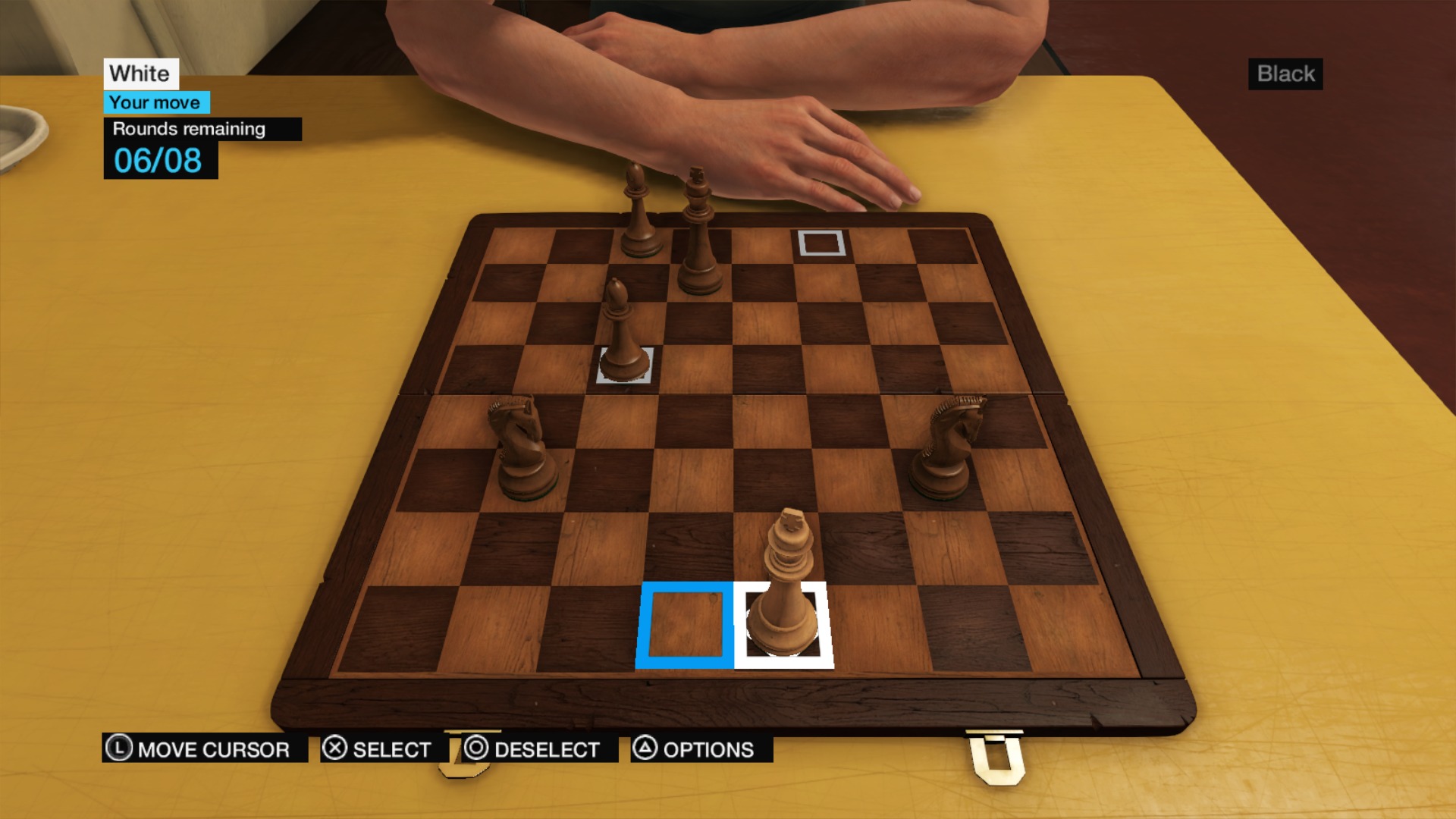 Watch_Dogs also features a suite of distractions more standard for an open-world game, but that doesn’t mean they are any less enjoyable. There are slots to spin, an infuriating cup-and-ball guessing game to play, a fully featured poker minigame to rob your wallet (I lost $10,000 of in-game currency to it earlier today) and a couple of genuinely brain-twisting chess puzzles that challenge you to avoid checkmate for as many turns as you can. All of these games are robust and offer in-game rewards (as well as a Trophy/Achievement) to boot. I even got all the way to the end of the chess challenges, despite my general ineptitude at chess, mostly because I could not let the smarminess of my opponent’s voice go unpunished.