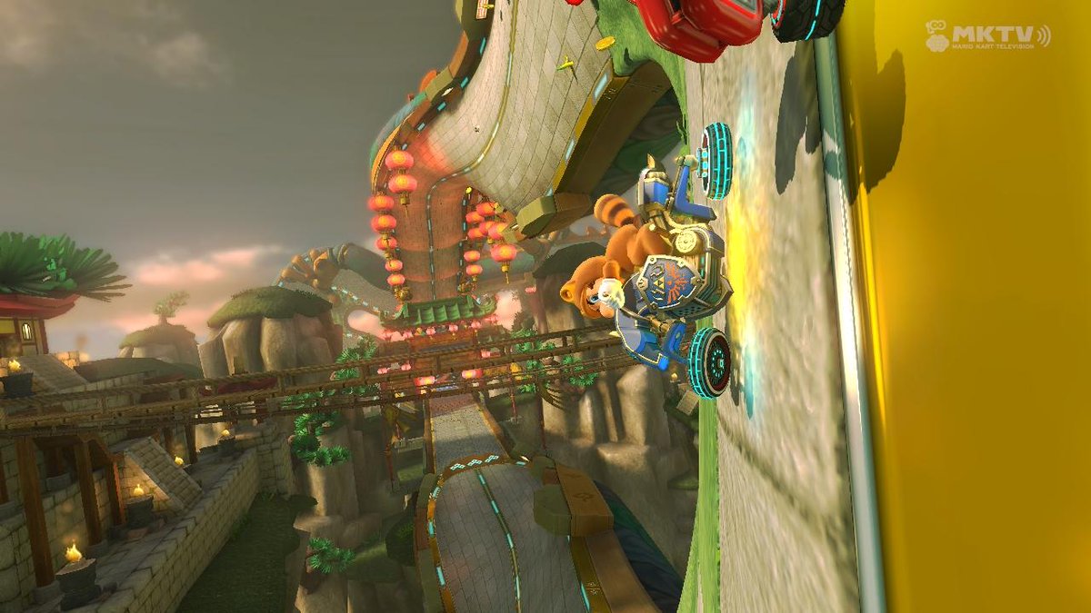The Super Smash Bros-style nods to other Nintendo franchises continue with Excitebike Arena, a simplistic oval-shaped racetrack with ramps reminiscent of the classic NES game. It’s compact nature mean that everyone tends to stay fairly close together, promoting the kind of chaos that makes Mario Kart so much fun to play with friends. Boost jumps and boost pads are placed differently every time you play the stage, too, which is a cool feature indeed. Dragon Driftway and Ice Ice Outpost are completely original creations, and they both rock. The former is a Chinese festival-inspired visual feast with plenty of twists and turns, while the latter makes use of two thin, intertwined tracks that stay close together the whole way through, providing opportunities for quick item escapes and crafty overtaking maneuvers. The DLC is brought home by Hyrule Circuit, a dense Zelda series tribute where the coins are replaced with rupees, the Piranha Plants make way for Deku Babas, touching the Master Sword gives you a boost and every sound from the item roulette roll to the lap change chime is replaced with an aural Zelda homage. It’s glorious.