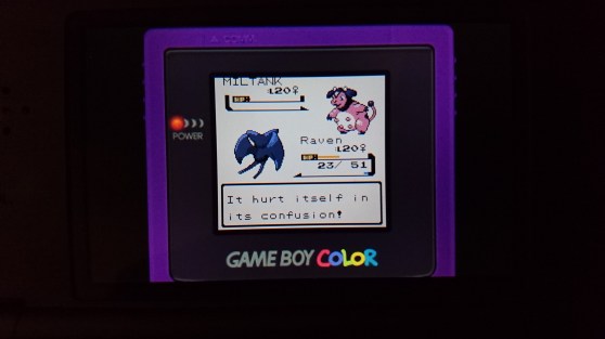 Yep, the fight was a slog and a half to be sure, but the way I eventually won was as satisfying as they come. Giving her a taste of her own chance-happy medicine, I went with the strategy of using my Wooper’s Rollout resistance to hit Miltank with repetitive Mud Slaps, lowering her accuracy as much as possible – usually just three or four times, mind you – before taking one for the team. Then came various Tail Whips and Leers from everyone else to increase Miltank’s self-inflicted confusion damage, along with a stray Supersonic from Ledyba to get some early damage in (Supersonic, of course, missed most of the time). One Milk Drink opportunity was enough to significantly mess things up, so the defense drops ended up being key. Then, when Miltank had sent all but one of my team packing, my speedy (and female) Zubat came out to serve as final tormentor. Using the perfect-accuracy Confuse Ray, confusion was easy to keep in effect, so a combination of Leech Life spam to recover health off her weakened defense and Bite for the compounded flinch chance was just the ticket. Things ran close – especially when Miltank still managed to hit two successive Rollouts while both confused and lacking accuracy – but eventually, the fight was over.