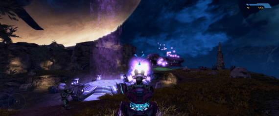 But these are few and far between. Most of the time the newer sheen absolutely knocks it out of the park. The high-contrast colour palette of Combat Evolved makes the subtlety and growing dread of Reach appear grey and lifeless – which it certainly isn’t. Vibrant hues surge across the screen and light up the outdoor backdrops as the Master Chief makes his official chronological debut exploring the eponymous Halo ring. The in-universe explanation for this is covered by said ring’s enigmatic otherworldliness, but make no mistake – this is a game about hope. Especially after playing Reach, Combat Evolved looks and feels like optimism given life – even despite those dark interior corridor moments, the frequent night time scenes, and the fact that the war against the Covenant is really just getting started. It’s a neon dream backed up by an influential orchestral soundtrack with more than a few crunchy 1980s flourishes.