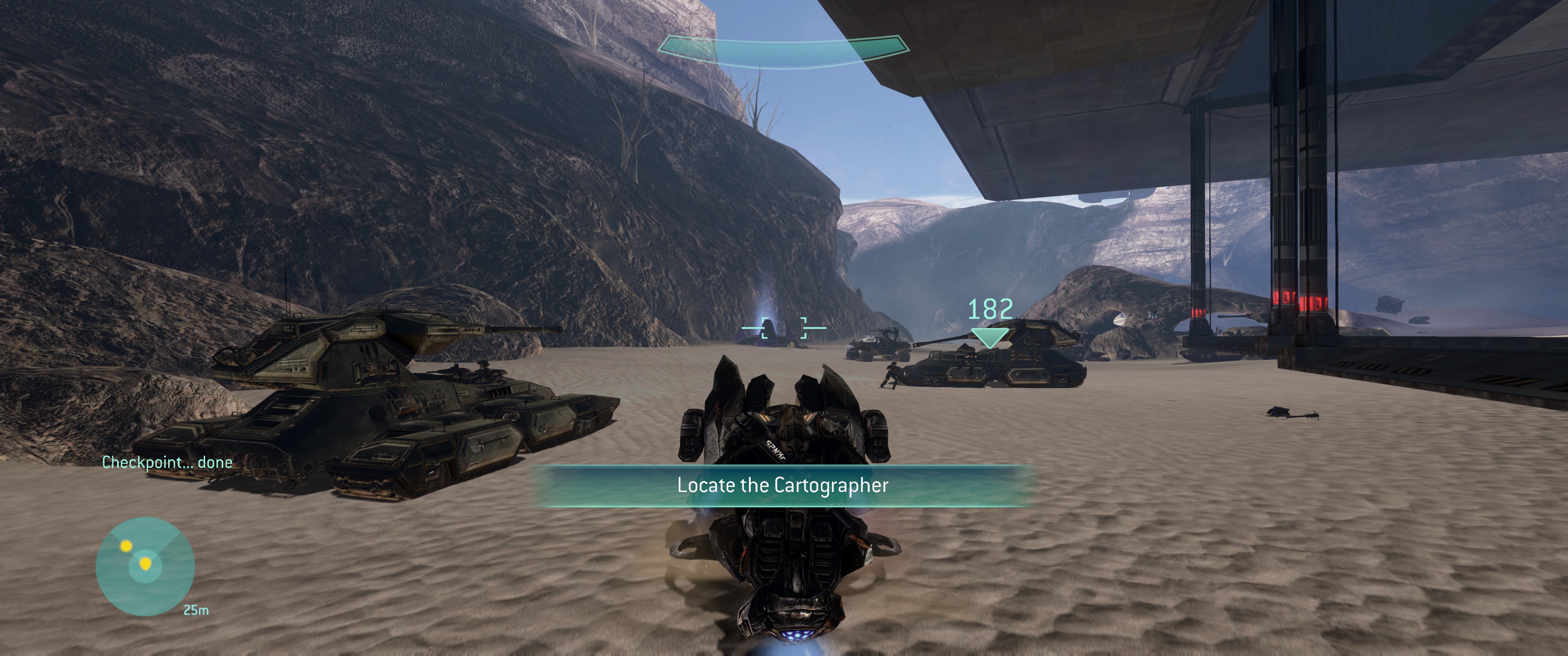 The game’s heads-up display is crisp and delicious, marking a generational leap forward in clarity. Even though the textures, geometry and especially character models on show make it very clear that this was an early Xbox 360 game – a step down from the mighty polish of Halo 2 Anniversary – every static element layered on top of the action feels worlds more contemporary than the bulky, solid-colour UI elements of the first two numbered Halo games. There is an actual, honest-to-goodness objective marker in the campaign, and it doesn’t take an age to show up. But I’m getting ahead of myself already.