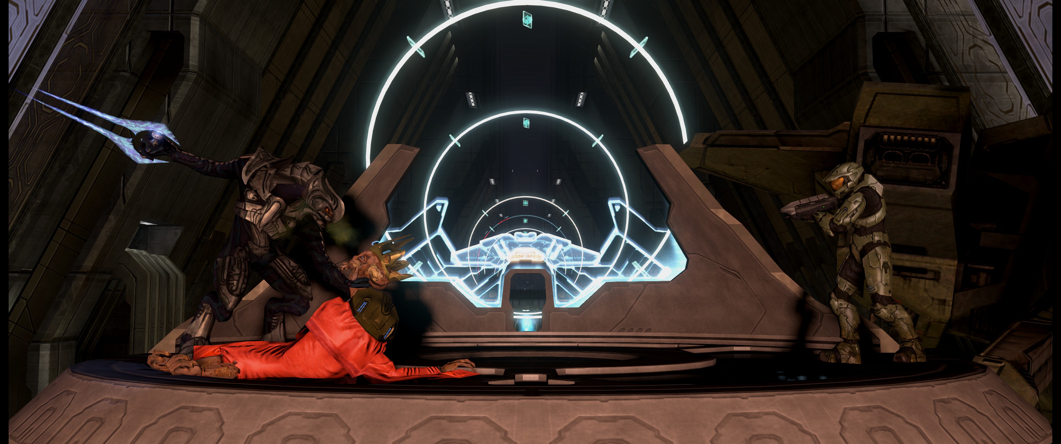 But just as the end seems near, the manipulative god-like parasite Gravemind reveals its duplicitous nature and Chief/Arbiter dive into the depths of an overrun vessel, smashing through the Flood’s most horrific incarnations on the way to Chief’s captive super-AI companion Cortana. Cue a host of intermittent image-warping effects between Flood encounters as the Gravemind does it’s best to sound as capital-E evil as possible while Cortana shares some of her darkest peak-2007 emo poetry. By this point I had played two Halo stories that get hijacked by the Flood back-to-back, and yet this fake-out finale still got me. Maybe it’s the fact that the Gravemind has you fighting alongside the Flood in that earlier ‘final’ corridor, which is admittedly pretty surreal in a year when I played Halo: Combat Evolved‘s Library for the first time.