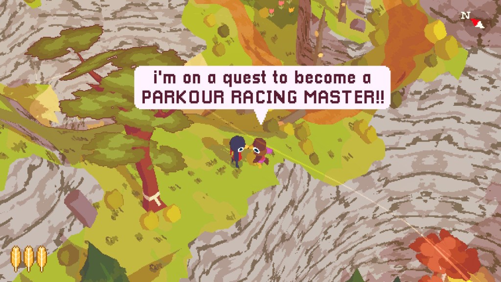 Seriously, the whole thing is over in a couple of hours – even if you go for 100% completion – and exists almost perfectly in the peaceful space between Animal Crossing Wild World aesthetics, Breath of the Wild traversal mechanics, and early-2010s narrative adventure storytelling. Whimsical chuckles abound, as do sidequests with perfectly-paced payoffs, gleeful a-ha moments borne from natural world exploration, and the odd deviously difficult race challenge sprinkled in for good measure.