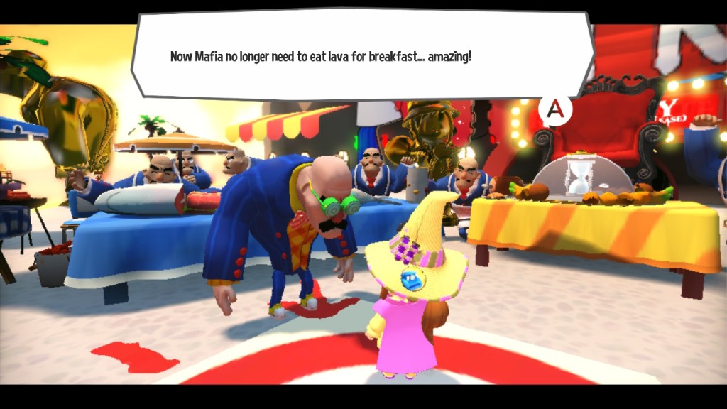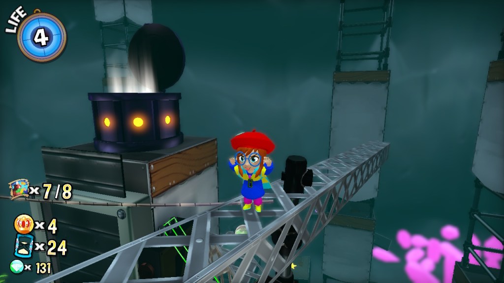 I’d followed AHIT since its announcement almost a decade ago, before even Yooka-Laylee had seen the light of a Kickstarter page. Back then the very idea of a “3D collect-a-thon platformer revival” seemed impossibly exciting, but in the years since many a project has failed to live up to the hype of ravenous ’90s kids. So it warms my heart to discover at last just how skillfully A Hat in Time walks the nostalgia/quality tightrope. The game strikes a finely-tuned flow balance by partnering genuinely tough platforming challenges with mercifully forgiving aerial movement and hit detection, opening the roof for some crazy slices of level design simply begging to become frustrating camera traps in the hands of less careful developers.
