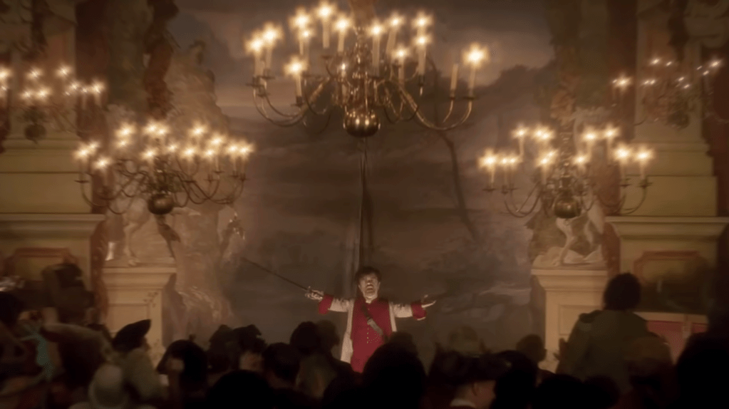There are theatrical, charisma-led main character introductions, and then there’s this scene. It’s obviously important to any retelling of the Cyrano de Bergerac story (and there have been many) to showcase just how witty and likeable the protagonist is despite his self esteem hang-ups, and I could scarcely imagine a finer example of this – nor a better vehicle for Peter Dinklage’s well-documented charm. Practically swinging in from the rafters to verbally skewer – and eventually literally skewer – those who would slight him, Dinklage’s Cyrano is a titan of poetic barbs and rhythmic showmanship, and the direction of his introductory scene is well and truly up to the standards you’d expect from verbose period piece adaptation expert Joe Wright.