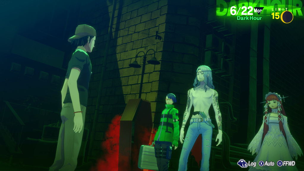 What I will say is that playing 3 after the other two games in the “modern Persona trio” is a real trip, as series staples simply taken for granted in 4 and 5 – like the mechanics beneath the ability to summon personas in the first place – are explored in gruesome, edgy 2007-emo detail. The death-tinged undertones of the other two stories stand at the forefront of this one, and while levity is still present in the script, there’s a heaviness that hangs above proceedings just about the whole way through the game. The greatest counterbalance to this is not a generous dose of comic relief, but rather the soundtrack, which despite liberal minor-key usage is dominated by upbeat, iconic Lotus Juice hip-hop that has had nerds toe-tapping for years and years.
