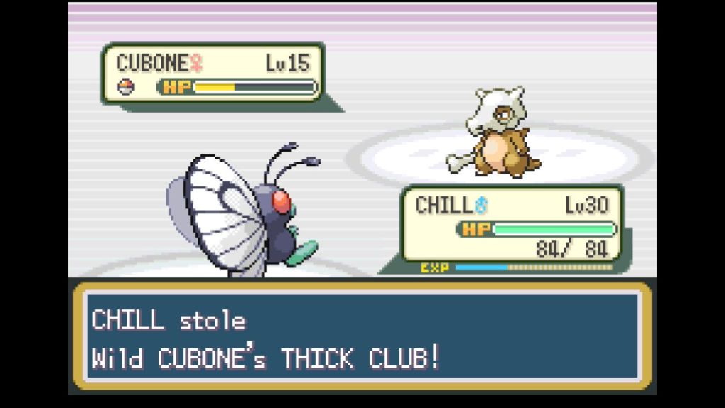 The effective Attack stat on this thing is sky-high with that club in hand, and despite low speed and an inability to take multiple strong special attacks, its access to three exclusive moves at times made it feel like I was playing a brand-new Pokémon game. STAB Bonemerang is an absolute joke roughly equal in power to Earthquake, and so is recoil-free late-game Double Edge; anything unable to KO Marowak in one hit usually went down immediately.