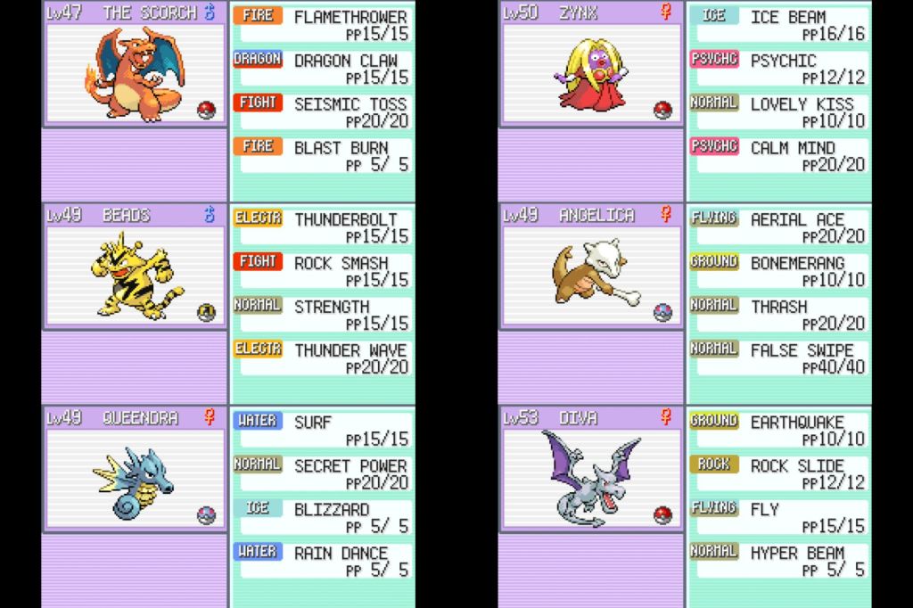One thing I was certain of going into this playthrough is that I wanted to put in the effort to assemble my most unusual Kanto team ever, and thanks to that unexpected week-early “leak” I had a bit of time to brainstorm and plan a bit. Using a basic online list of HM compatibility and a vague sense of type synergy, I think I achieved that, and the result was an absolute blast. I had absolutely zero playthrough experience with five of my final six team members this time around, and all five of those appear deep into the mid-to-late game of Fire Red.